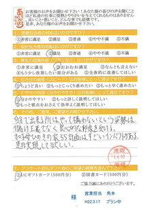 | お客様アンケート | 新築工事のお引き渡しをさせていただいた時、リフォーム工事のご入金を頂いた時などに、お客様アンケートを実施しています。お客様からいただいたお言葉を真摯に受け止め、今後の経営に活かしてまいります。 |