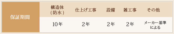 保証期間については、住宅の部分ごとに期間を定めさせていただきます。